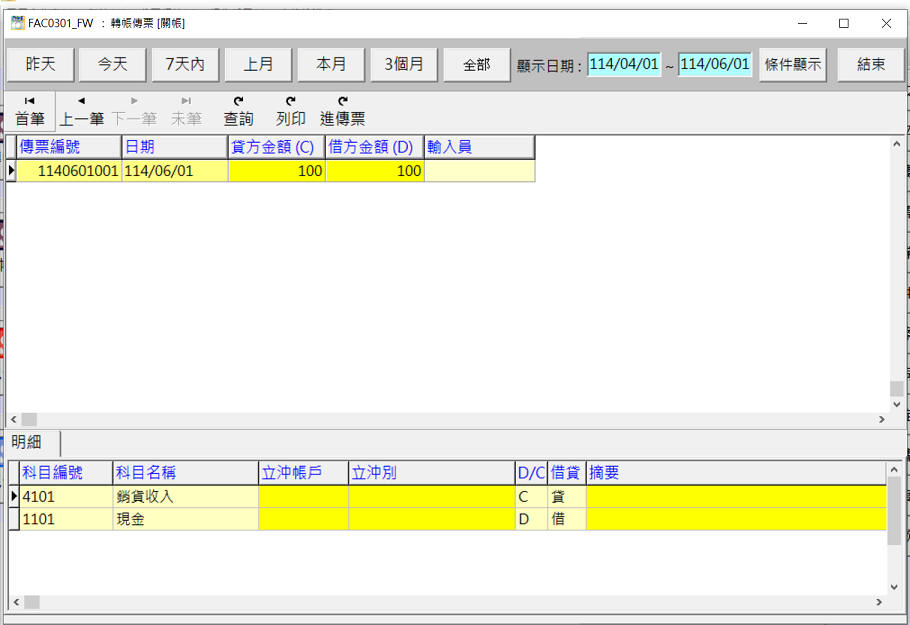 - 當輸完傳票後, 有經過帳